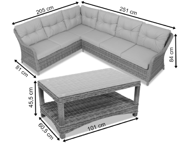 Puikus kampinis komplektas, kviečiantis atsipalaiduoti terasoje arba pavėsinėje. Garden Point firmos Toledo Corner tinka net sudėtingiausioms kompozicijoms.